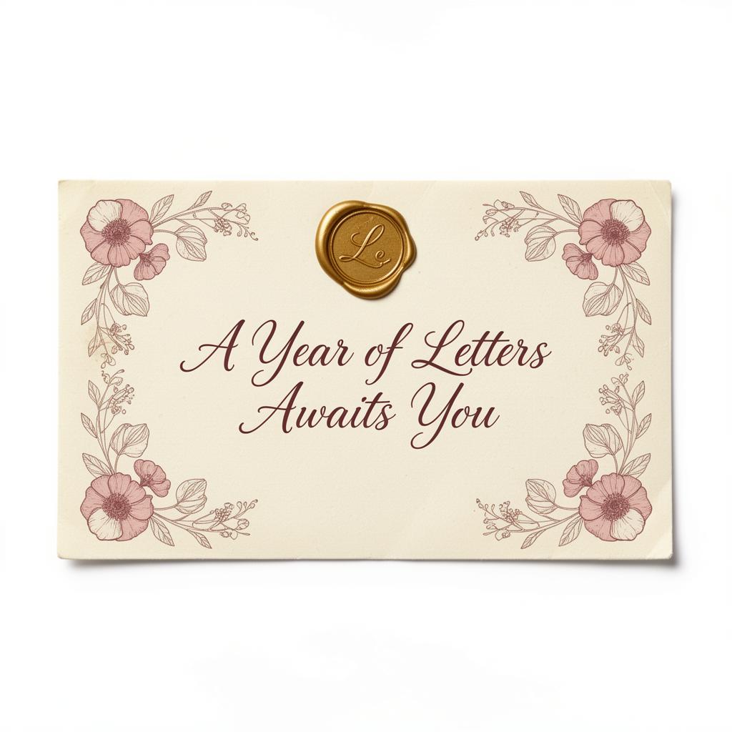 A beautifully designed printable gift card that tells them a year of letters is on its way. It sets the tone — premium, intentional, and deeply personal — without spoiling the surprise of what's inside each envelope.